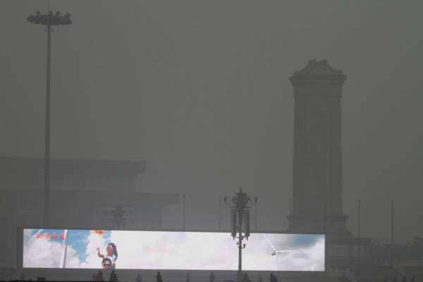 北京遭沙尘雾霾天 空气重度污染(1)(2)